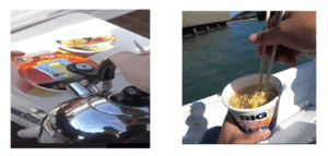 昼ごはん、船上でのカップラーメンは格別に美味しいものです。